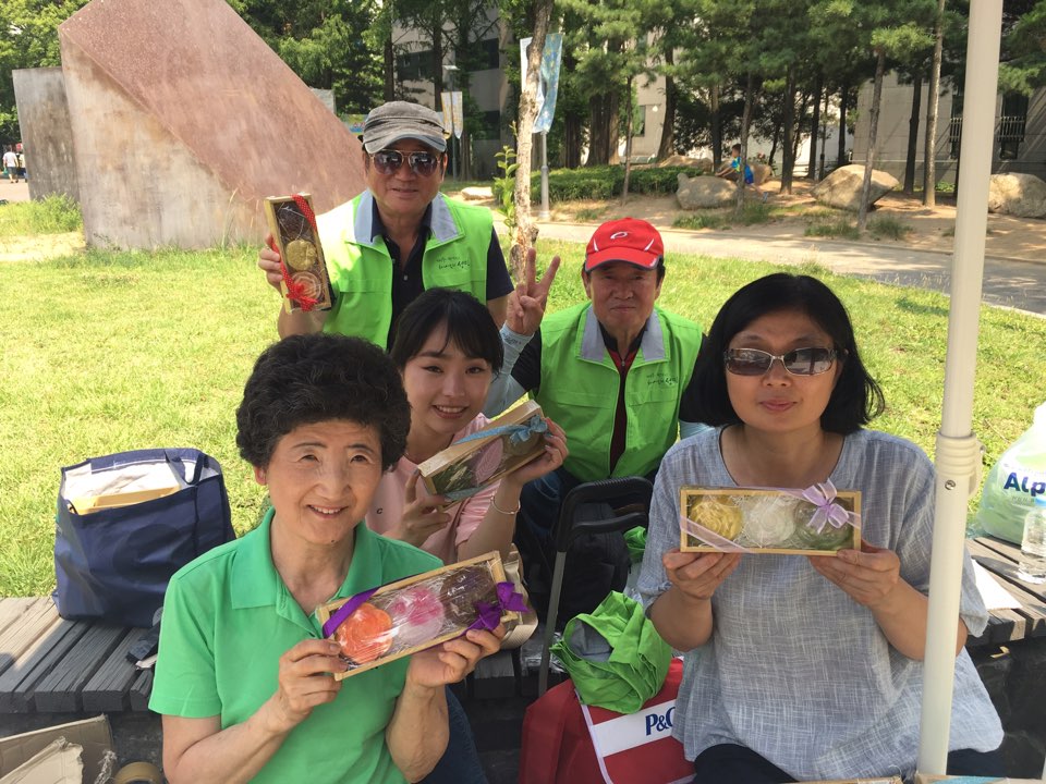 더운 날씨 속에서 지치지만 이날 흘린 땀방울이 돌봄이웃들의 기쁨이 될 것을 생각하며 다함께 힘을 내어 판매하였습니다.