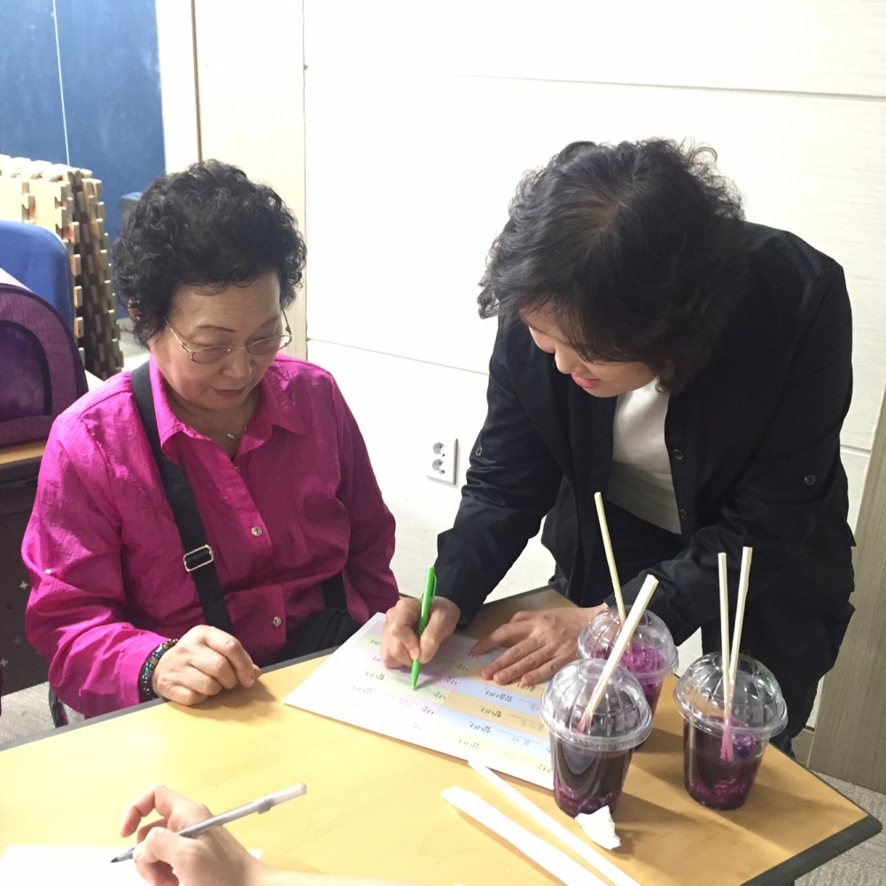 4월 16일, 2층 강당에서 결연어르신과 가족봉사단의 2016년 세번째 만남이 진행되었습니다.