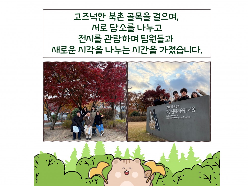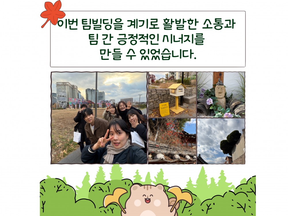 2025 지역밀착과 팀빌딩 페이지 정보 작성자 경영지원팀 작성일25-11-26 22:48 조회277회 댓글0건 관련링크 이전글 다음글 목록 본문 * 이 디자인은 미리캔버스에서 작업되었습니다.(https://www.miricanvas.com)* 글꼴 출처 : https://bit.ly/4aRZ60P#크리스마스 #붕세권 #연말 댓글목록 등록된 댓글이 없습니다. 이전글 다음글 목록