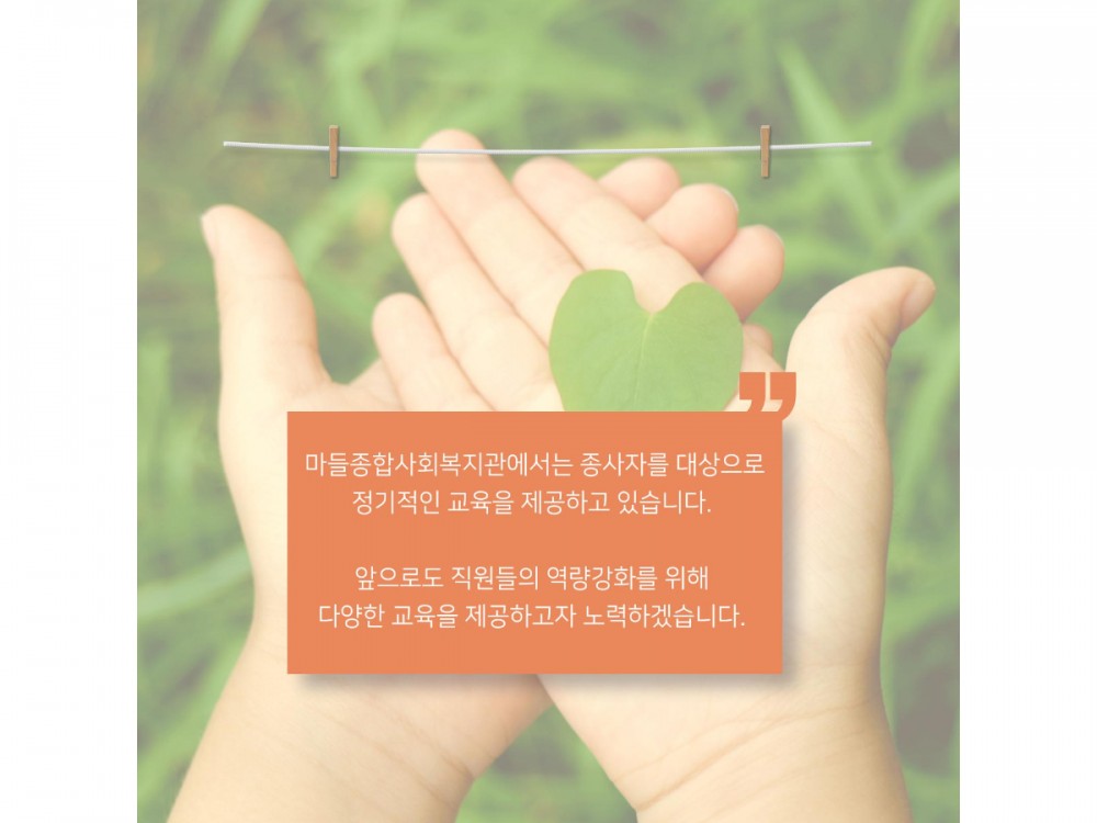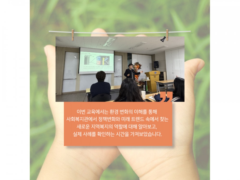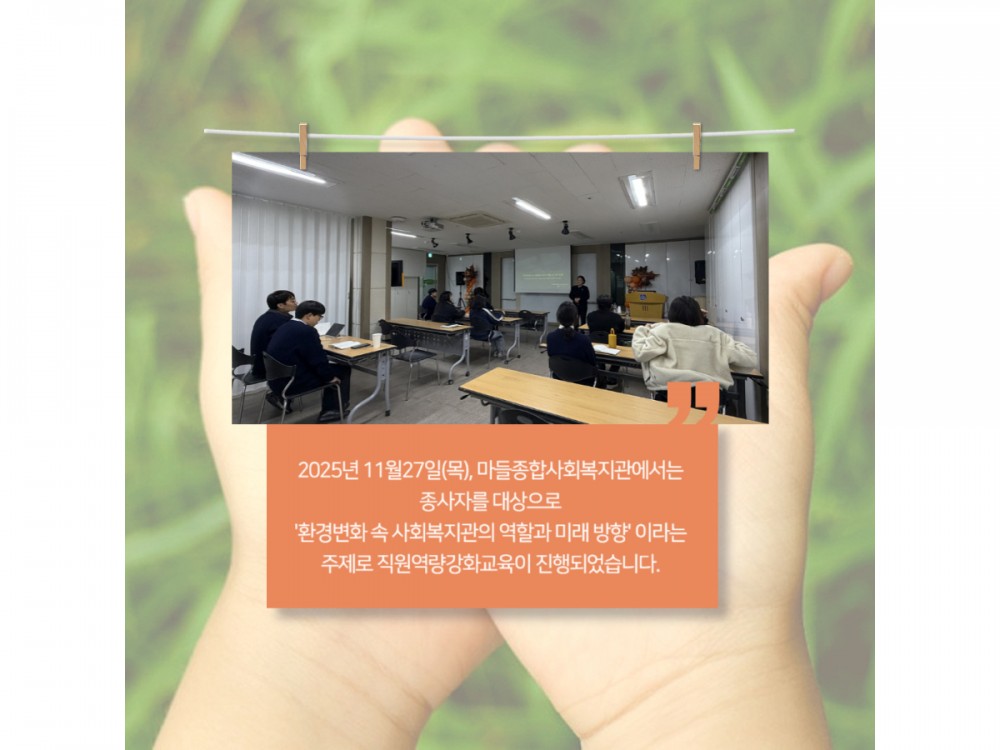 직원역량강화교육 (사회복지 동향 및 법체계 교육) 페이지 정보 작성자 시설운영팀 작성일25-11-27 19:57 조회230회 댓글0건 관련링크 이전글 다음글 목록 본문 * 이 디자인은 미리캔버스에서 작업되었습니다.(https://www.miricanvas.com)* 글꼴 출처 : https://bit.ly/4aRZ60P 댓글목록 등록된 댓글이 없습니다. 이전글 다음글 목록