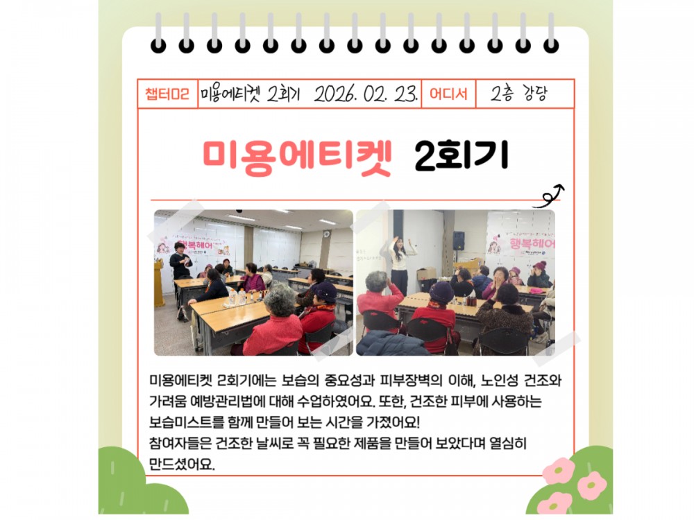 2026년 2월 행복헤어(Happy Hair) 페이지 정보 작성자 시설운영팀 작성일26-02-26 19:22 조회88회 댓글0건 관련링크 이전글 다음글 목록 본문 #명절 #입학 #봄* 이 디자인은 미리캔버스에서 작업되었습니다.(https://www.miricanvas.com) 댓글목록 등록된 댓글이 없습니다. 이전글 다음글 목록