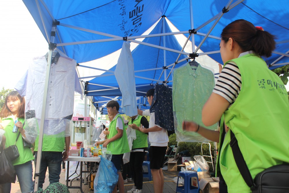 청소년휴카페, 녹색가게 자원봉사자들과 함께 바자회를 진행하였고