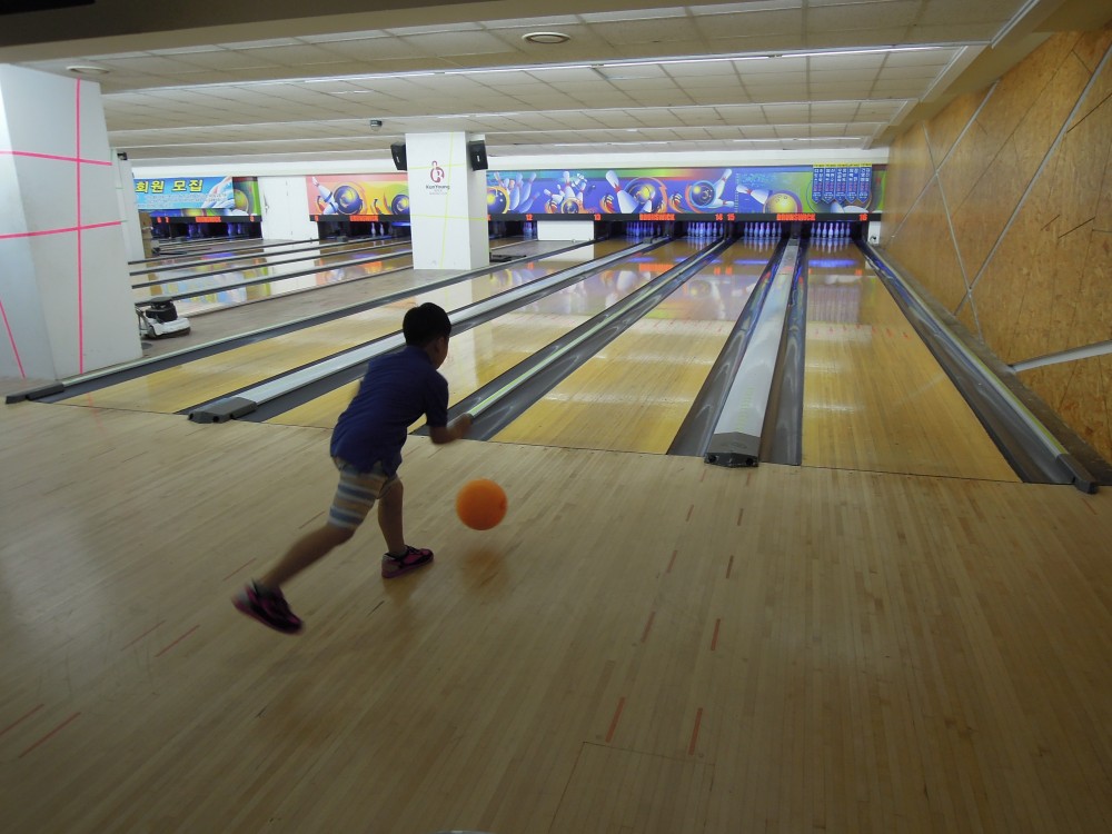 고사리 손으로 공을 굴리고, 핀이 쓰러지며 좋아하기도 하고 공이 옆으로 떨어지면 아쉬워하는 모습을 볼 수 있었습니다.