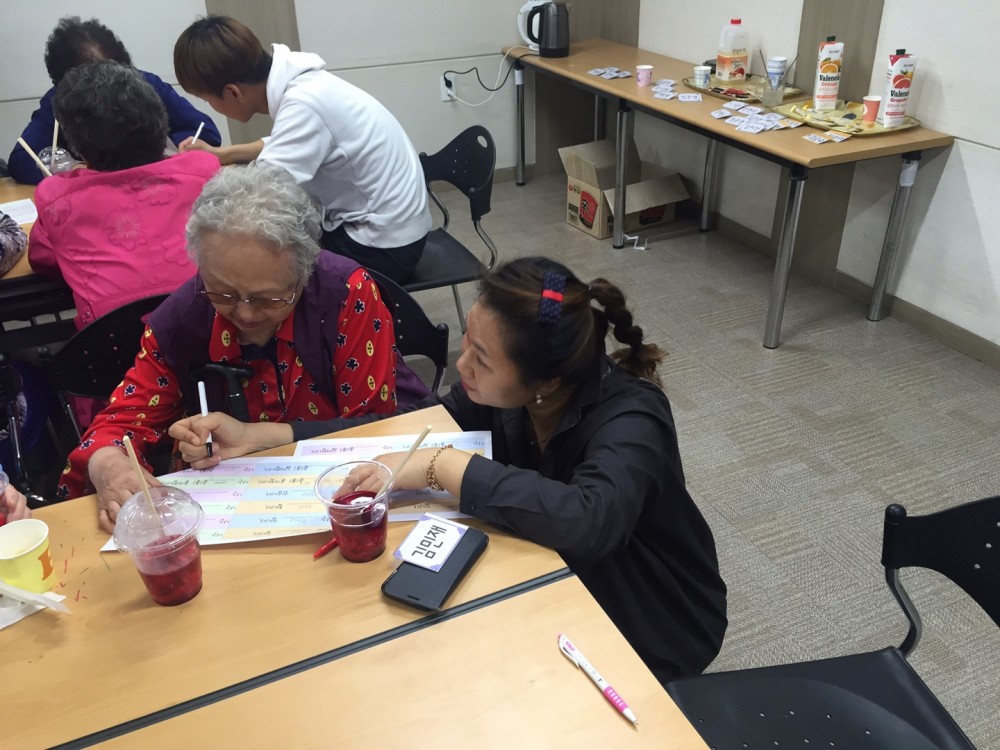 "나는 ~~~입니다." 빈칸 채우기를 통해서 어르신에 대해 더욱 알아가는 시간을 가졌습니다.