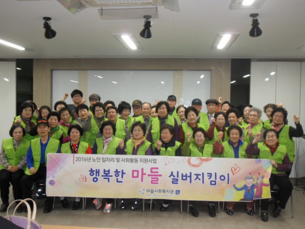 2016년 3월 7일 노인사회활동지원사업 '행복한 마들 실버지킴이' 발대식 및 활동교육이 진행되었습니다.