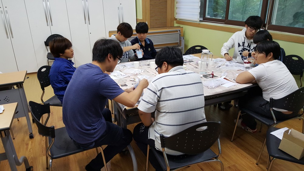 선배와 후배, 자원봉사자들이 각 팀을 만들어 서로 석고방향제를 만들어 나갔습니다.