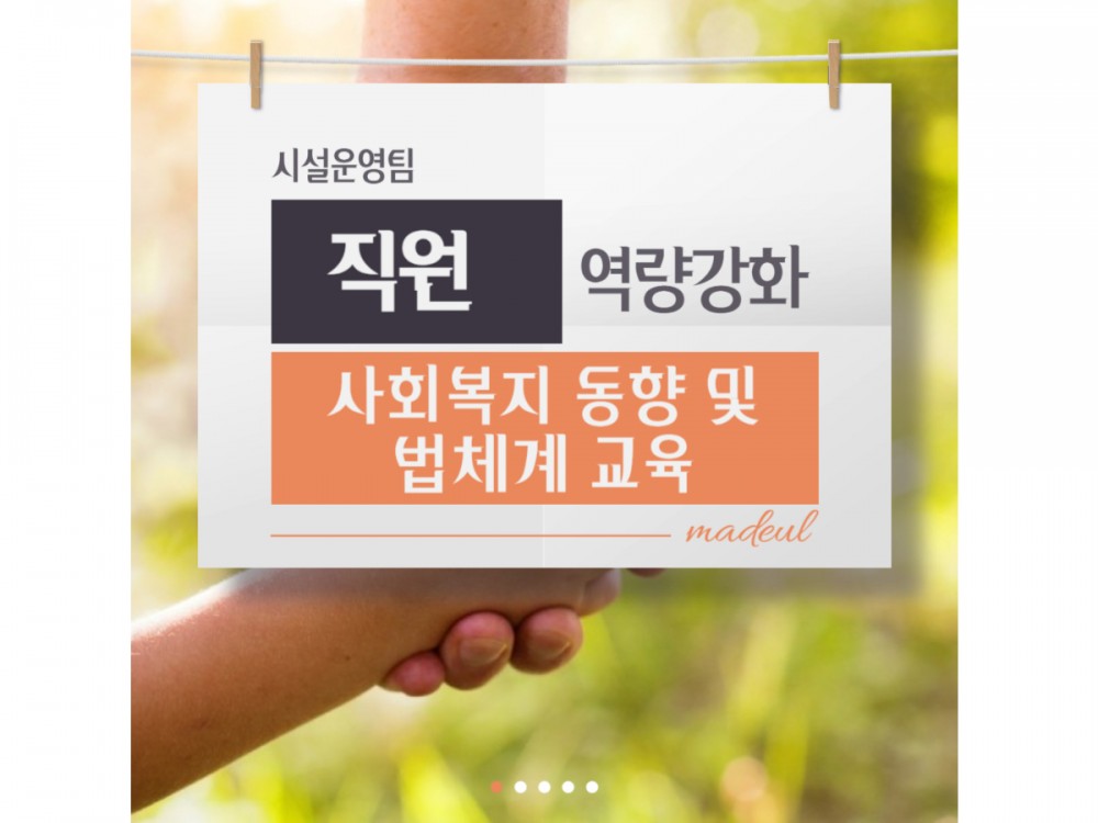 직원역량강화교육 (사회복지 동향 및 법체계 교육) 페이지 정보 작성자 시설운영팀 작성일25-11-27 19:57 조회183회 댓글0건 관련링크 이전글 다음글 목록 본문 * 이 디자인은 미리캔버스에서 작업되었습니다.(https://www.miricanvas.com)* 글꼴 출처 : https://bit.ly/4aRZ60P 댓글목록 등록된 댓글이 없습니다. 이전글 다음글 목록
