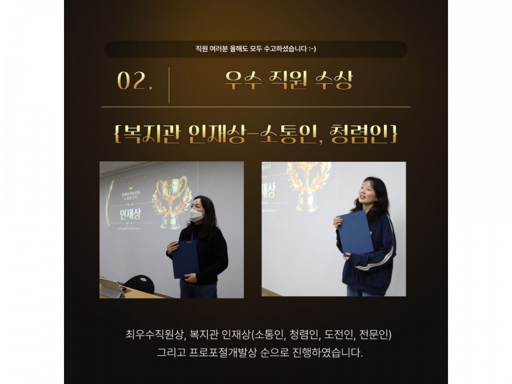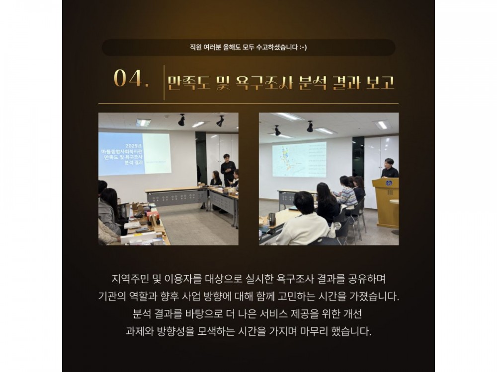 2025년 마들종합사회복지관 종무식 페이지 정보 작성자 경영지원팀 작성일25-12-31 17:10 조회129회 댓글0건 관련링크 이전글 다음글 목록 본문 댓글목록 등록된 댓글이 없습니다. 이전글 다음글 목록