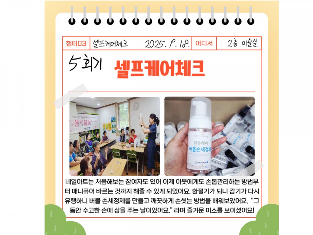 행복헤어 9월활동 페이지 정보 작성자 시설운영팀 작성일25-09-22 23:52 조회302회 댓글0건 관련링크 이전글 다음글 목록 본문 #단풍 #추석 #명절* 이 디자인은 미리캔버스에서 작업되었습니다.(https://www.miricanvas.com) 댓글목록 등록된 댓글이 없습니다. 이전글 다음글 목록
