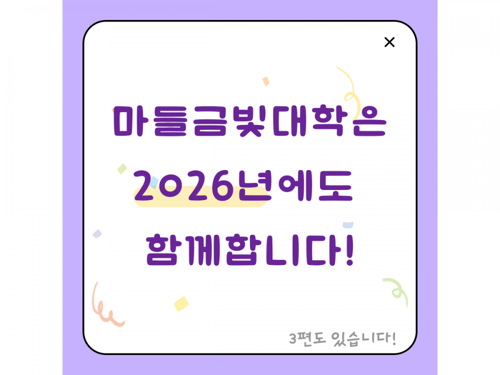 마들금빛대학 문화여가프로그램 하이라이트 페이지 정보 작성자 서비스팀 작성일25-12-23 15:36 조회95회 댓글0건 관련링크 이전글 다음글 목록 본문 #크리스마스 #붕세권 #연말* 이 디자인은 미리캔버스에서 작업되었습니다.(https://www.miricanvas.com) 댓글목록 등록된 댓글이 없습니다. 이전글 다음글 목록