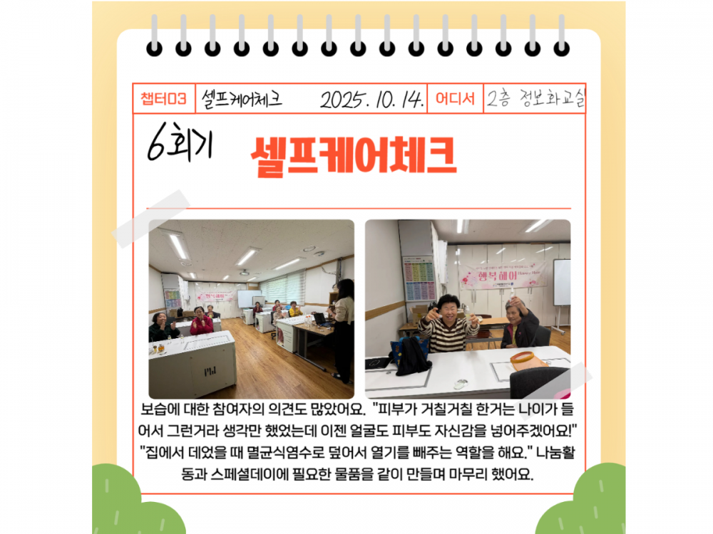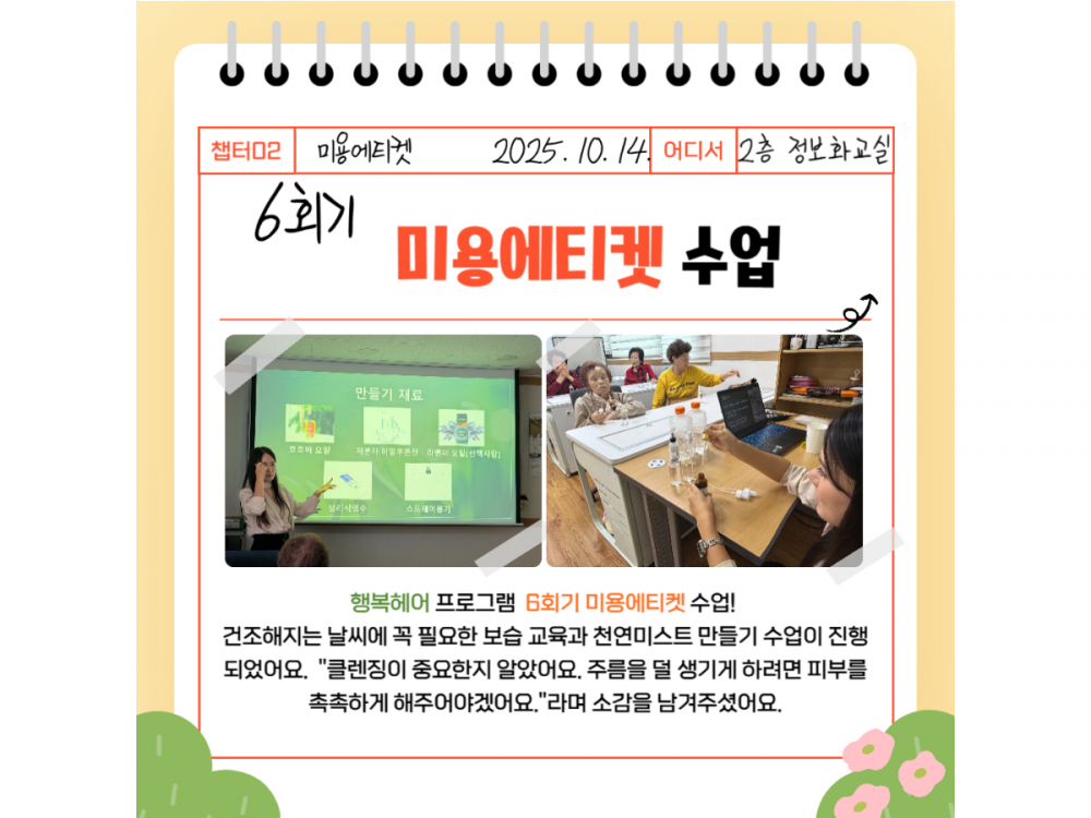 행복헤어 10월활동 페이지 정보 작성자 시설운영팀 작성일25-10-25 11:41 조회44회 댓글0건 관련링크 이전글 다음글 목록 본문 #단풍 #추석 #명절* 이 디자인은 미리캔버스에서 작업되었습니다.(https://www.miricanvas.com) 댓글목록 등록된 댓글이 없습니다. 이전글 다음글 목록