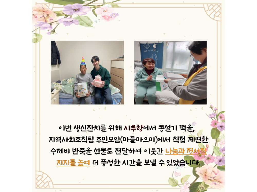 3월 '찾아가는 생신잔치' 페이지 정보 작성자 서비스1팀 작성일24-03-28 17:53 조회1,674회 댓글0건 관련링크 이전글 다음글 목록 본문 #벚꽃#어버이날#어린이날이 디자인은 미리캔버스에서 작업되었습니다.(https://www.miricanvas.com) 글꼴 출처 : https://bit.ly/4aRZ60P 댓글목록 등록된 댓글이 없습니다. 이전글 다음글 목록