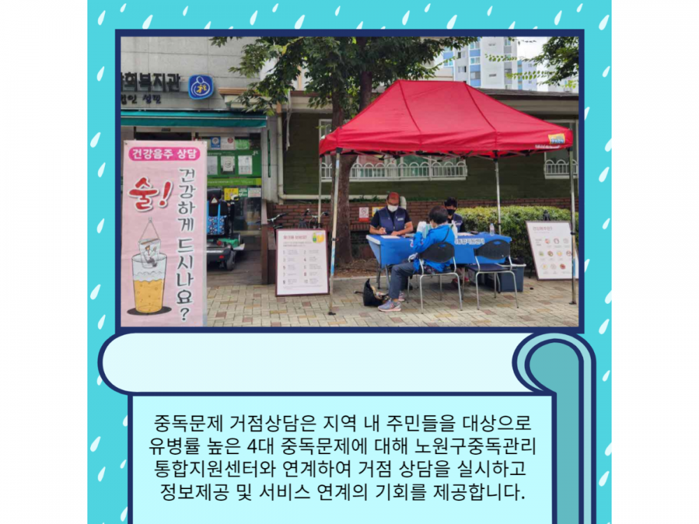 10월 '찾아가는 중독거점상담' 진행 페이지 정보 작성자 서비스2팀 작성일22-10-11 11:41 조회1,320회 댓글0건 관련링크 이전글 다음글 목록 본문 * 이 디자인은 미리캔버스에서 작업되었습니다. (https://www.miricanvas.com)* 글꼴 출처 : https://bit.ly/4aRZ60P#단풍#축제 댓글목록 등록된 댓글이 없습니다. 이전글 다음글 목록