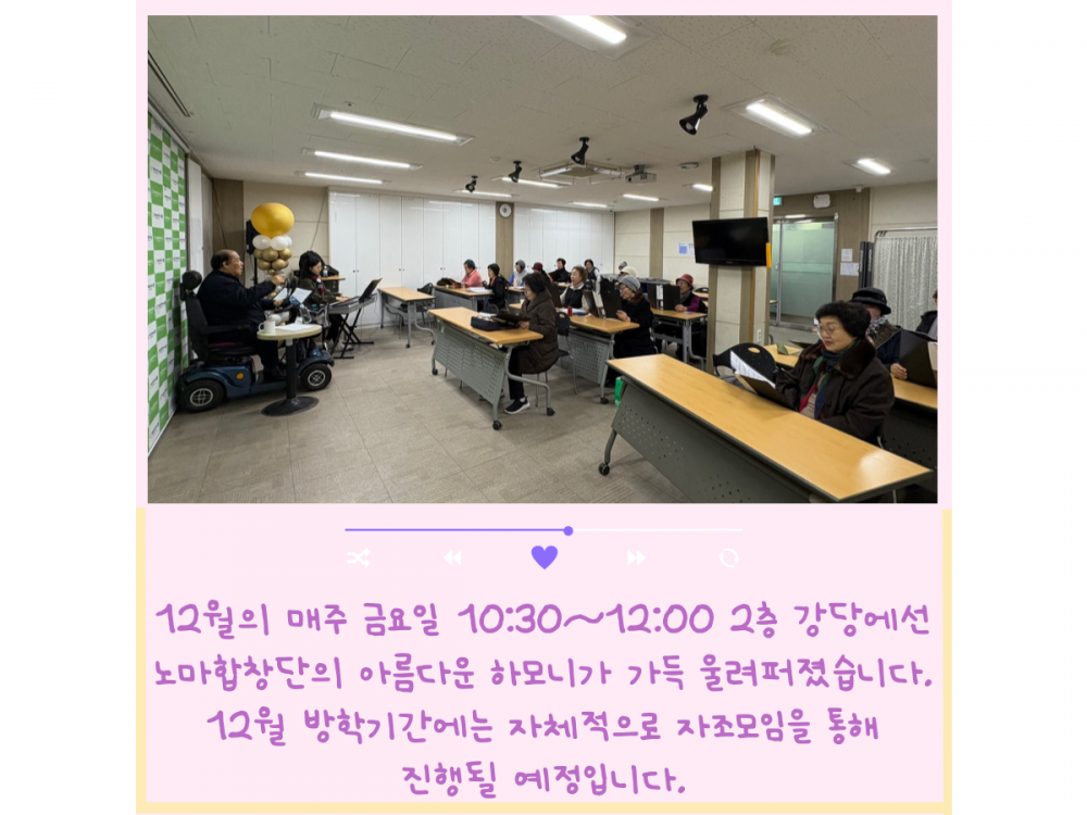 노마합창단 12월 활동내용 페이지 정보 작성자 서비스1팀 작성일24-12-27 18:28 조회1,024회 댓글0건 관련링크 이전글 다음글 목록 본문 #첫눈 #크리스마스* 이 디자인은 미리캔버스에서 작업되었습니다.(https://www.miricanvas.com)* 글꼴 출처 : https://bit.ly/4aRZ60P 댓글목록 등록된 댓글이 없습니다. 이전글 다음글 목록
