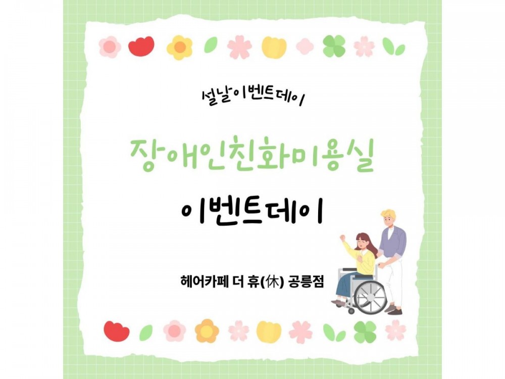 장애인친화미용실(공릉점) 설날 이벤트데이 페이지 정보 작성자 시설운영팀 작성일26-02-19 22:02 조회6회 댓글0건 관련링크 다음글 목록 본문 댓글목록 등록된 댓글이 없습니다. 다음글 목록